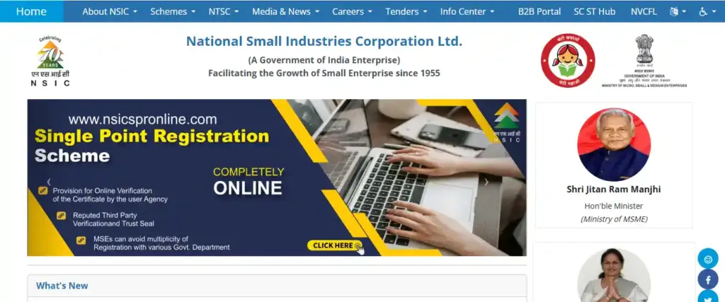 - सबसे पहले आपको NSIC की आधिकारिक वेबसाइट nsic.co.in पर जाना होगा।