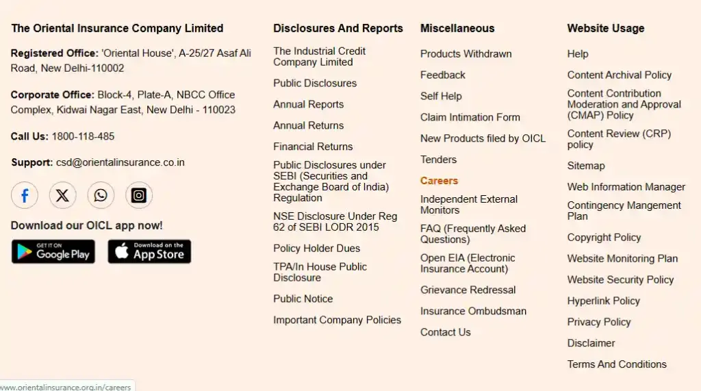 - सबसे पहले आपको OICL की आधिकारिक वेबसाइट orientalinsurance.org.in पर जाना होगा।
