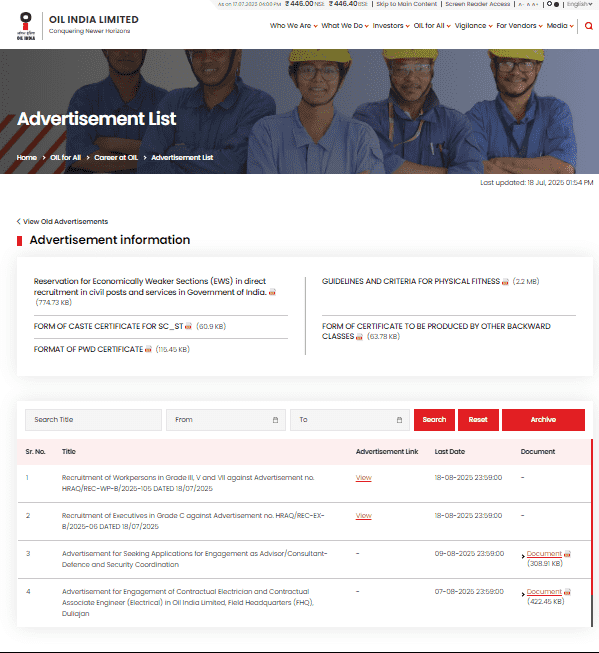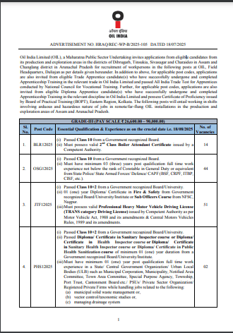 Emptiness Particulars of OIL India Workpersons Notification 2025?