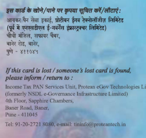 • पीछे की तरफ आपको यह Point out मिलेगा कि आपका PAN Card किस Firm का है। वहां यह Hindi और English दोनों Languages में लिखा रहेगा। आपको Test करना है कि उस पर NSDL लिखा हुआ है या UTI-ITSL लिखा है।