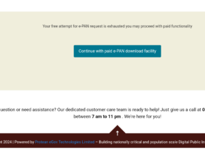 • अब आपके सामने एक नया Web page Open होगा, Proceed with Paid e-PAN Obtain Facility का Button दिखेगा, इस पर आपको Click on करना है।