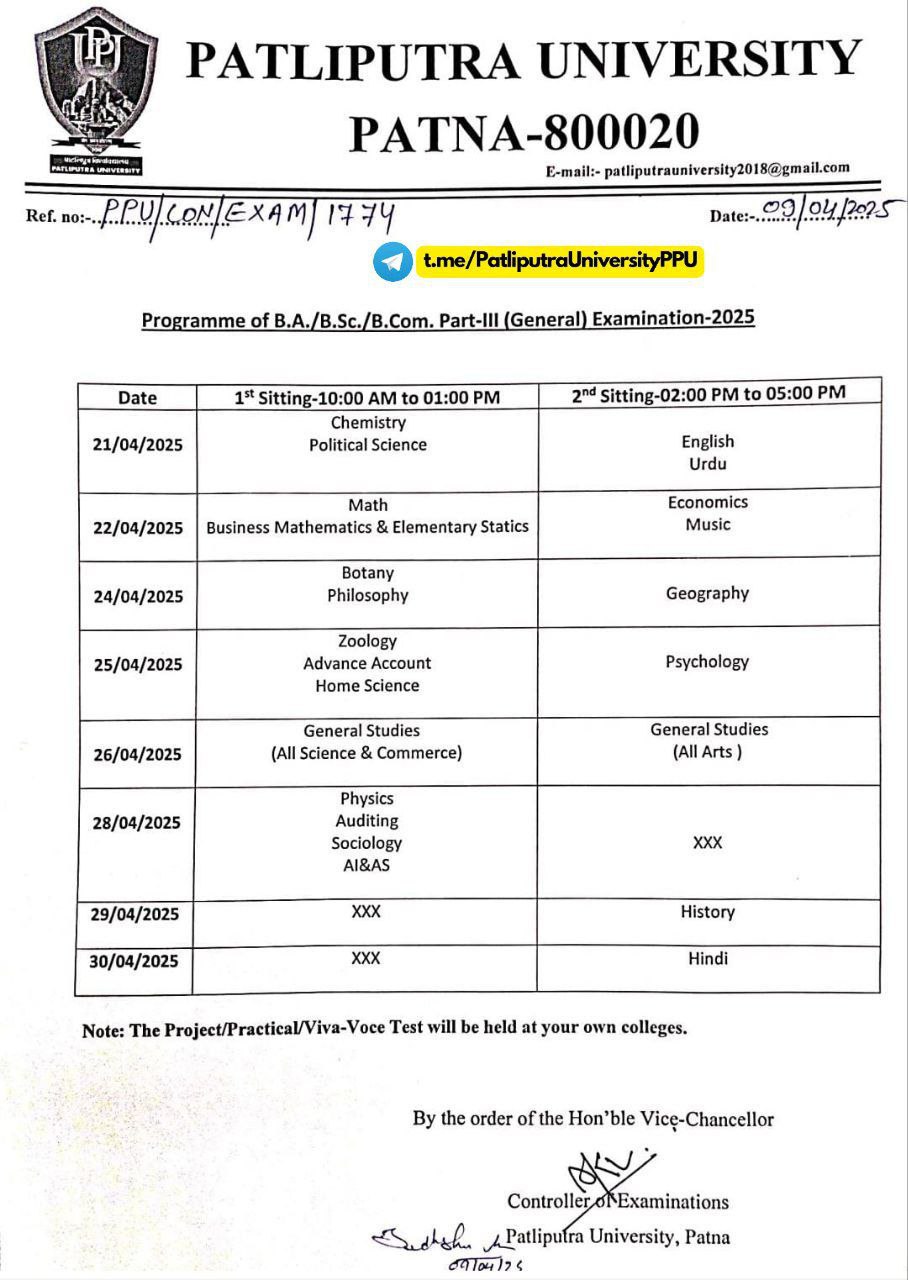 Patliputra College UG Half 3 Examination Routine 2025 ~ संपूर्ण जानकारी