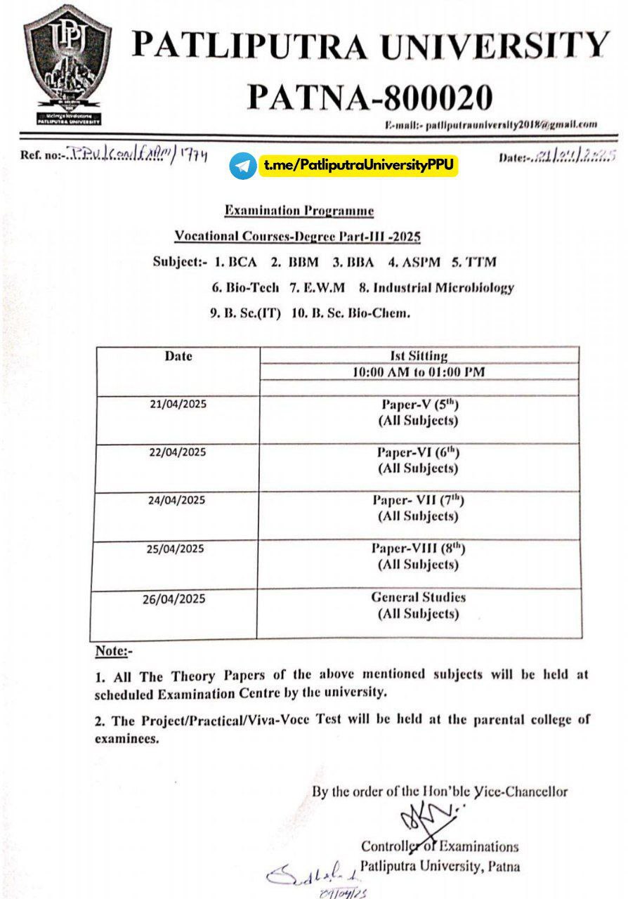 Patliputra College UG Half 3 Examination Routine 2025 ~ संपूर्ण जानकारी