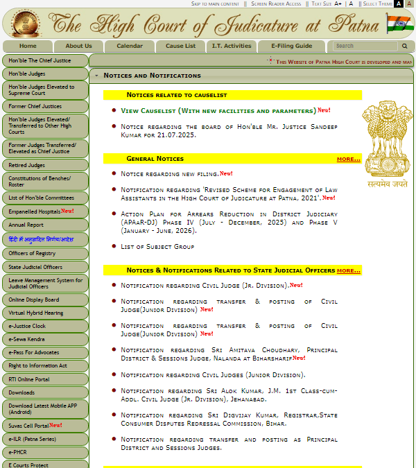 - Patna Excessive Courtroom Stenographer Emptiness 2025 मे ऑनलाइन अप्लाई करने के लिए सबसे पहले आपको ” पटना हाई कोर्ट ” की आधिकारीक वेबसाइट के होम- पेज पर आना होगा जो कि, इस प्रकार का होगा –