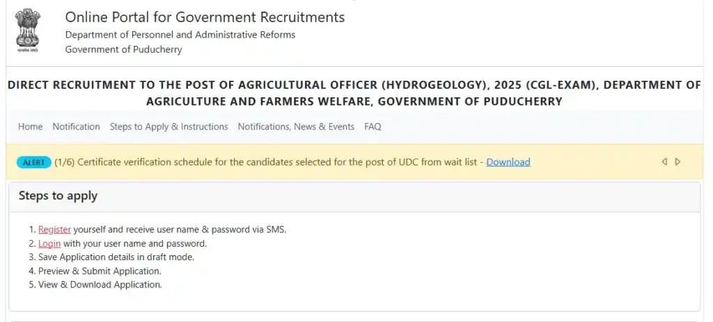 • सबसे पहले आपको ‘Division of Personnel and Administrative Reforms Authorities of Puducherry’ की आधिकारिक वेबसाइट recruitment.py.gov.in पर जाना होगा।