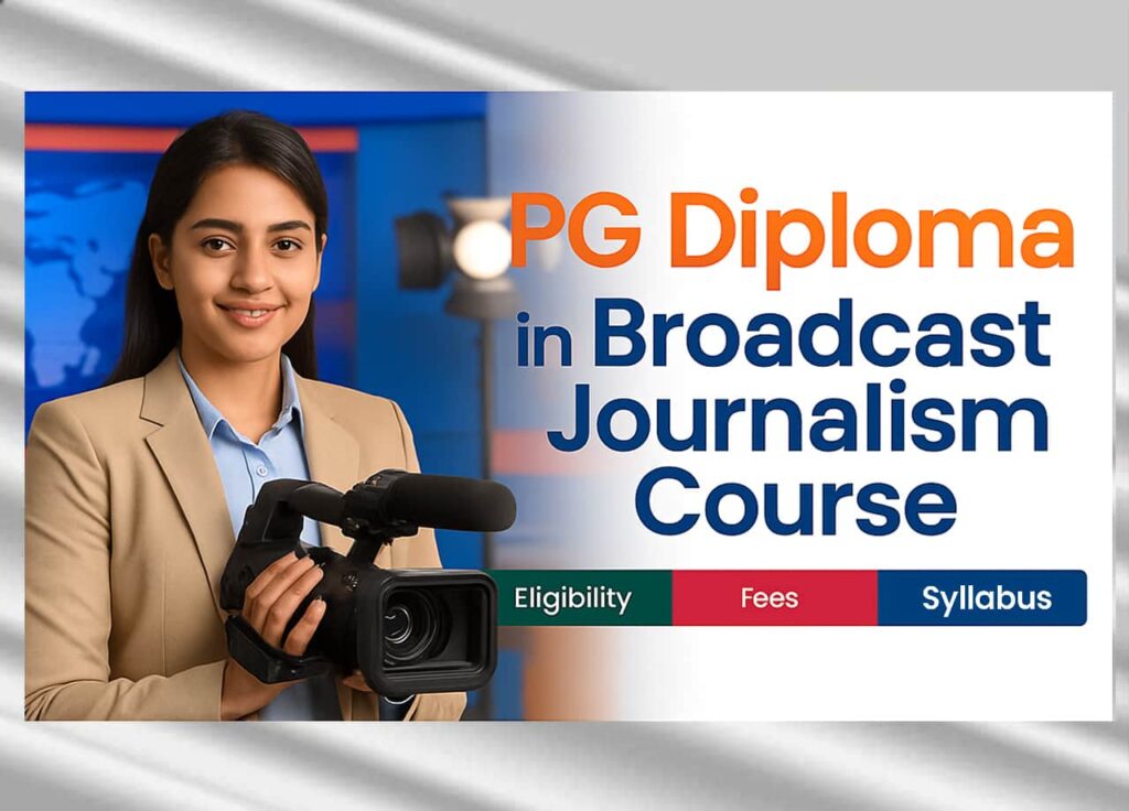 PG Diploma in Broadcast Journalism Course: PG Diploma in Broadcast Journalism Course ये 1 साल का पोस्टग्रेजुएट डिप्लोमा कोर्स है, जो Broadcast Journalism यानी टीवी, रेडियो और डिजिटल मीडिया के लिए न्यूज रिपोर्टिंग पर फोकस करता है। इस कोर्स में छात्रों को समाचार ढूंढ़ने, लिखने, रिपोर्ट करने और प्रेजेंट करने की पूरी ट्रेनिंग दी जाती है।