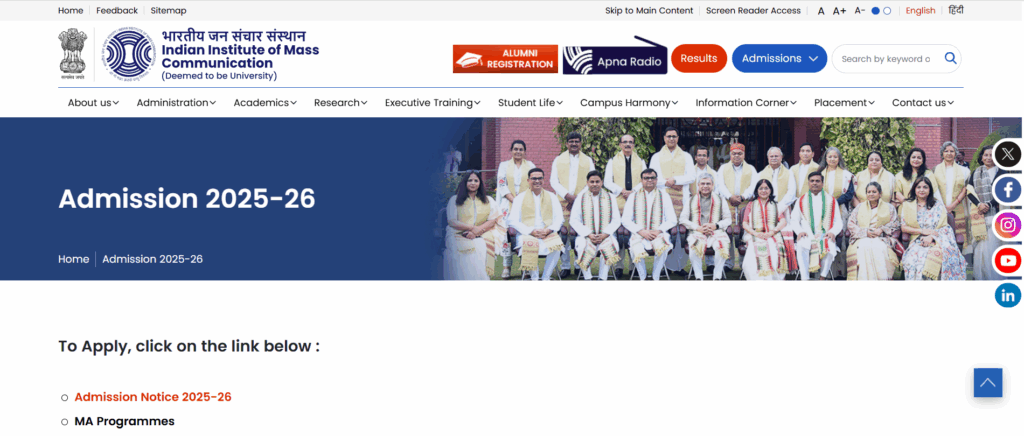 PG Diploma in Broadcast Journalism में प्रवेश की प्रक्रिया शुरू होने पर नीचे दिए गए चरणों का पालन करें: