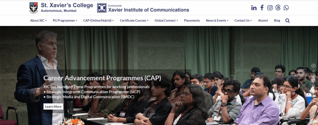 - Indian Institute of Mass Communication (IIMC), New Delhi and different campuses