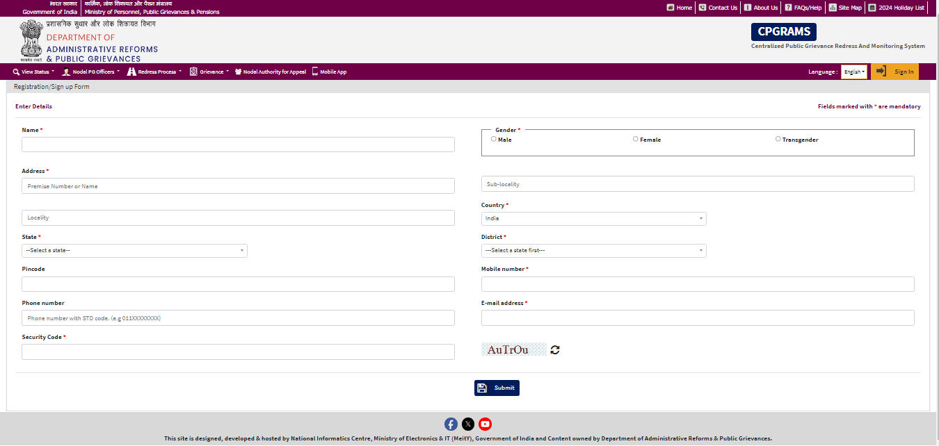 PG Portal Grievance Registration