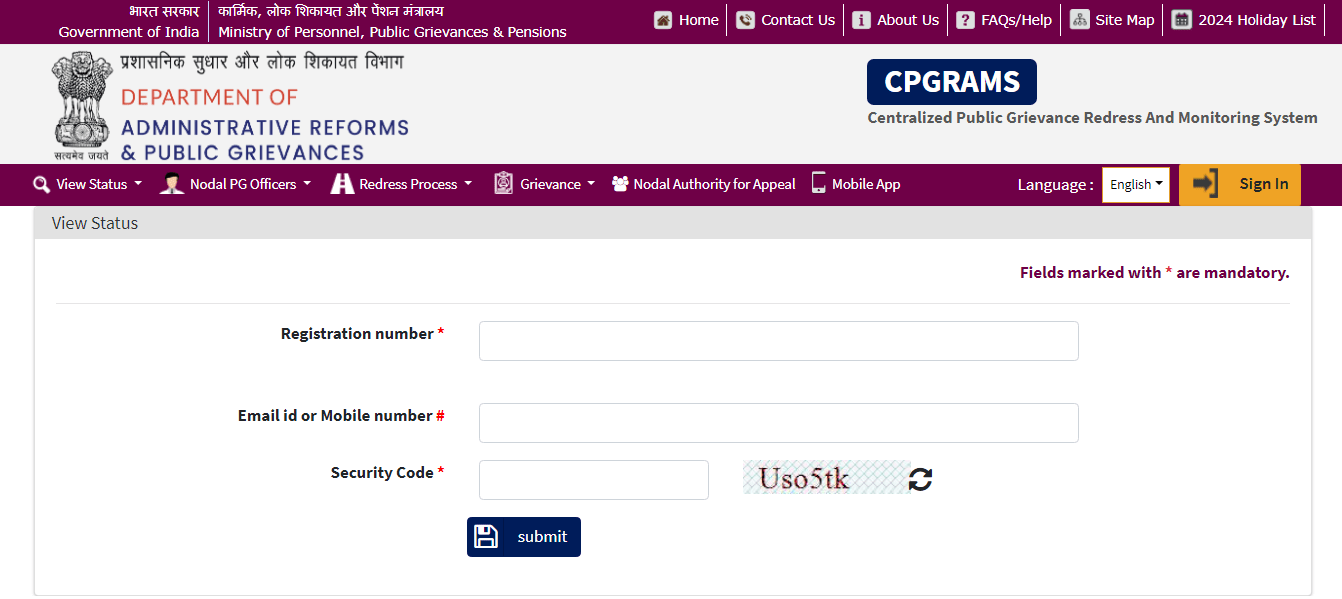 PG Portal Grievance Registration |