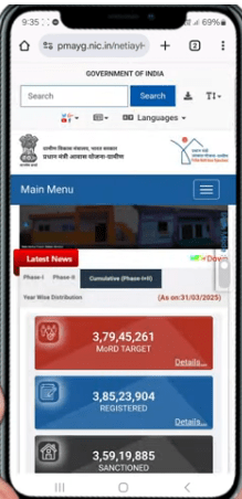 - PM Awas Yojana Checklist Standing Test On-line करने के लिए सबसे पहले आपको अपने स्मार्टफोन के क्रोम ब्राऊजर के सर्च बॉक्स मे pmayg.nic.in को टाईप करके सर्च के विकल्प पर क्लिक करना होगा,