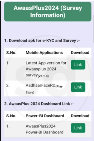 • अब यहां पर आपको Newest App Model For AwaasPlus 2024 Survey ( v2.1.0) के आगे ही Hyperlink का विकल्प मिलेगा जिस पर आपको क्लिक करना होगा और साथ ही साथ आपको Aadhar Face RD ( Play Retailer ) के आगे ही Obtain Hyperlink मिलेगा जिस पर क्लिक करके आपको एप्प को डाउनलोड व इंस्टॉल कर लेना होगा आदि।