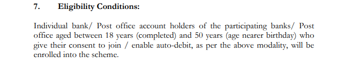 • किसी भी भाग लेने वाले बैंक / डाकघर में सक्रिय सेविंग अकाउंट आवश्यक