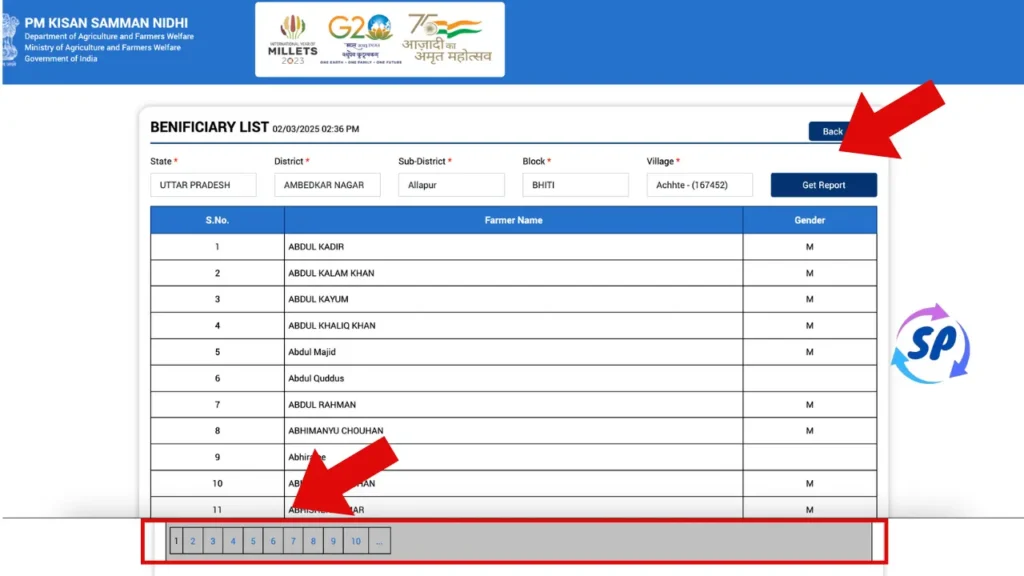 स्टेप 4 – अब आपके सामने लाभार्थी सूची खुल जाएगी जिसमें आप अपना नाम चेक कर सकते है। इसमें कहीं पेज दिए गए है, आपका नाम यदि पहले पेज पर नहीं होता है , तो आप अगले पेज पर सर्च कर सकते है।