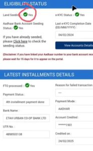 • यदि इस Web page में Land Seeding, e-KYC Standing, Aadhar Seeding With Financial institution Accounts तीनो में “Sure” लिखा हुआ दिखाई दे रहा है