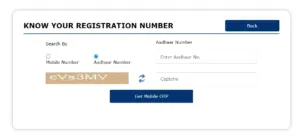 आप स्टेटस करने वाला पेज पर जाकर Know Your Registration No ऑप्शन पर क्लिक कर सकते हैं इसके बाद आधार कार्ड या मोबाइल नंबर के द्वारा रजिस्ट्रेशन नंबर प्राप्त करके स्टेटस चेक कर सकते हैं।