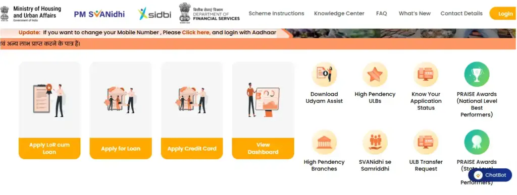 PM SVANIDHI website home page for PM SVANIDHI Credit Card 2026
