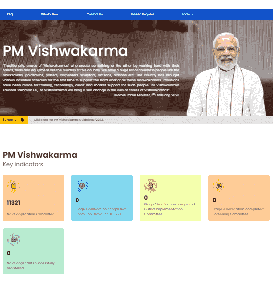 - PM Vishwakarma Yojana On-line Apply 2025 करने के लिए सबसे पहले आपको इसकी Official Web site के होम – पेज पर आना होगा जो कि, इस प्रकार का होगा –