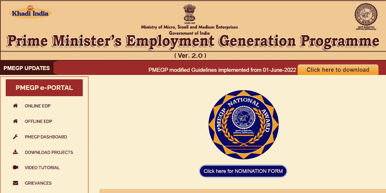 - PMEGP Mortgage Yojana 2025 में ऑनलाइन आवेदन करने के लिए सबसे पहले आपको इसकी आधिकारीक वेबसाइट के होम – पेज पर आना होगा जो कि, इस प्रकार का होगा –
