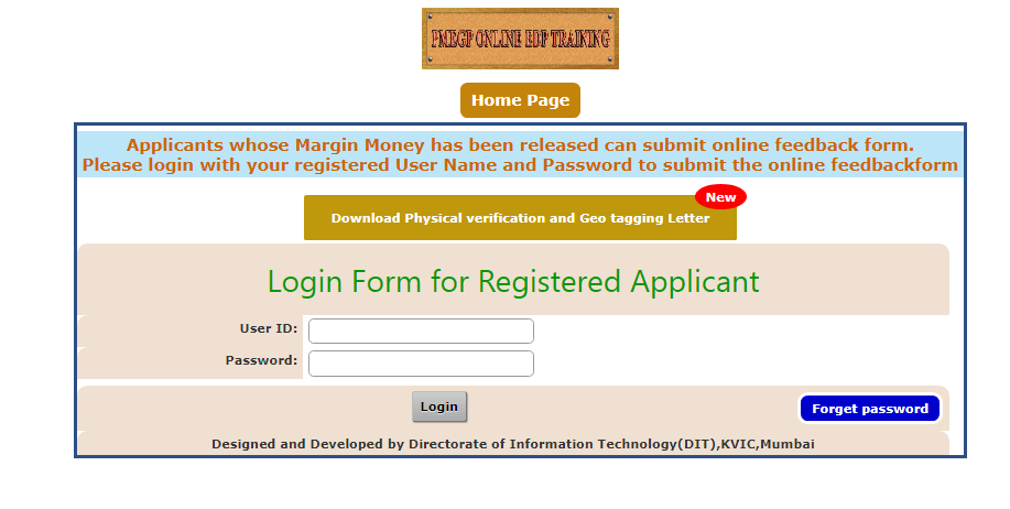 - होम – पेज पर आने के बाद आपको Registered Applicant के आगे ही pmegp Login का विकल्प मिलेगा जिस पर आपको क्लिक करना होगा,