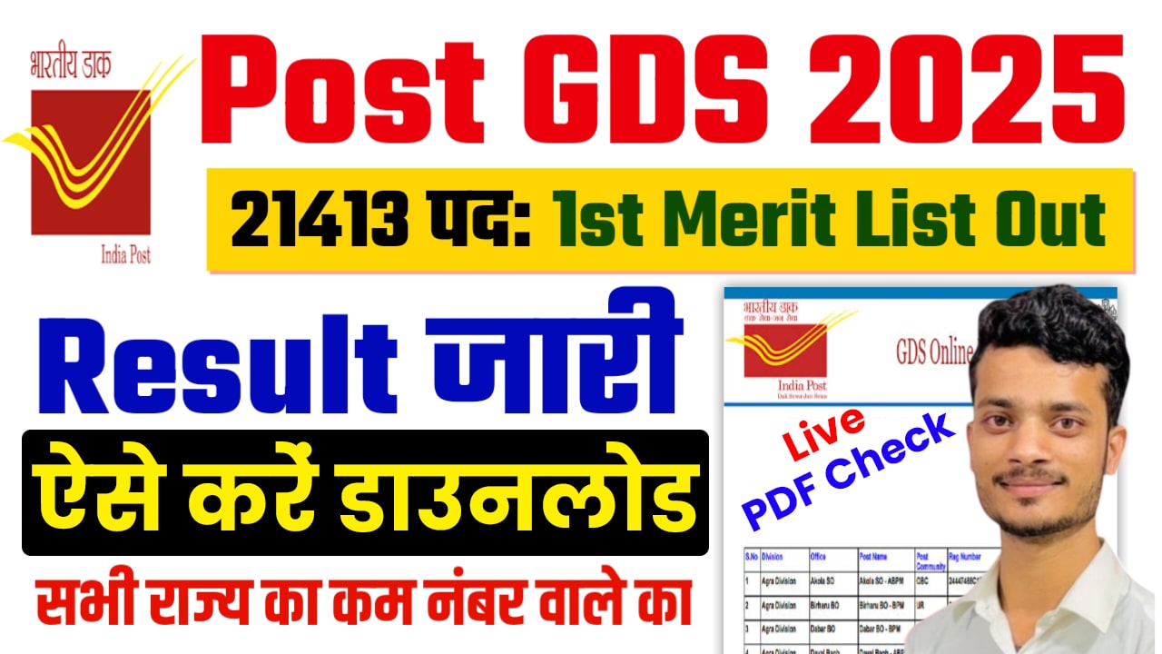 इंडिया पोस्ट ग्राम डाक सेवक ( जीडीएस ) का फर्स्ट मैरिट लिस्ट हुआ जारी, जाने फटाफट ऐसे करें मैरिट लिस्ट मे नाम चेक और क्या है पूरी प्रक्रिया – Publish Workplace GDS 1st Advantage Listing 2025?