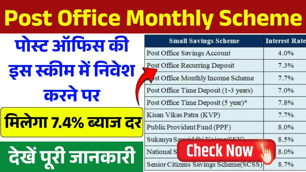 Publish Workplace Month-to-month Scheme: दोस्तों यदि आप बहुत समय से अपनी धनराशि को निवेश करने के लिए कोई गारंटी रिटर्न स्कीम ढूंढ रहे हैं, तो हम आपको बता दें कि आप पोस्ट ऑफिस की इस स्कीम में निवेश कर सकते हैं। इस स्कीम में कोई भी जोखिम नहीं हैं इस स्कीम में आपको महीने का निर्धारित रिटर्न मिलेगा।