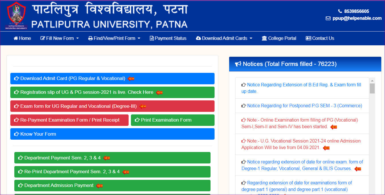 - दूसरी तरफ हम, आपको बता देना चाहते है कि, पाटलिपुत्र विश्वविद्यालय ( पीपीयू ) मे इस सत्र मे स्नातक ( तीन व चार वर्षीय च्वाईस बेस्ड क्रेडिट सिस्टम के तहत ) के तहत नामांकन / दाखिला प्रक्रिया को पूरी तरह से सेंट्रलाईज्ड किया जाएगा और