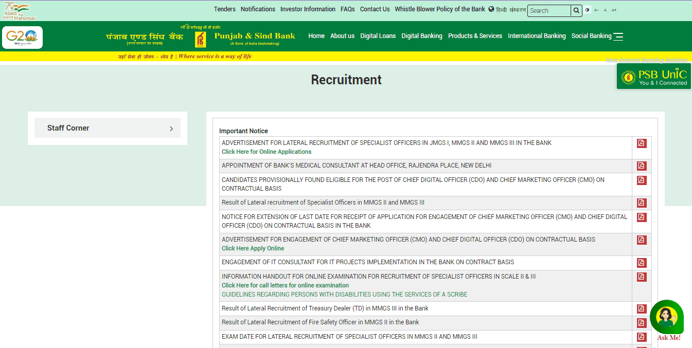 • Punjab And Sind Financial institution Apprentices Recruitment 2025 मे, ऑनलाइन आवेदन करने के लिए सबसे पहले आपको इसके Official Recruitment Web page पर आना होगा जो कि, इस प्रकार का होगा –