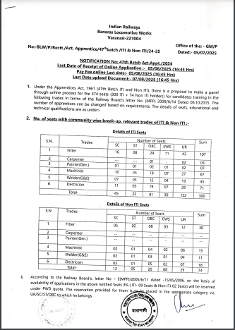 10वीं / 12वीं पास हेतु बनारस लोकोमोटिव वर्क्स ने निकाली बिना परीक्षा अप्रैंटिस भर्ती, जाने क्या है पूरी भर्ती, आवेदन प्रक्रिया और सेलेक्शन प्रोसेस – Railway BLW Apprentice Recruitment 2025?