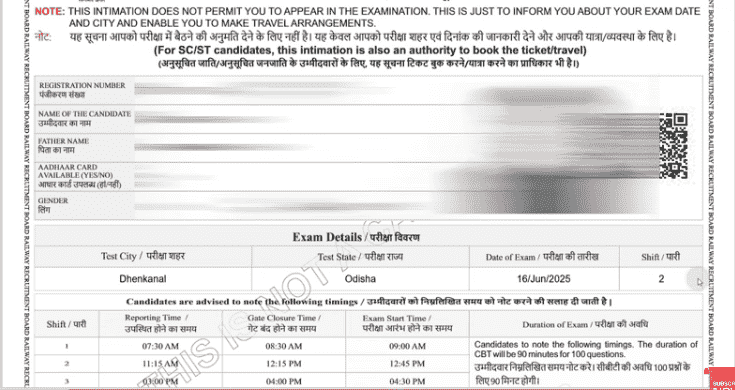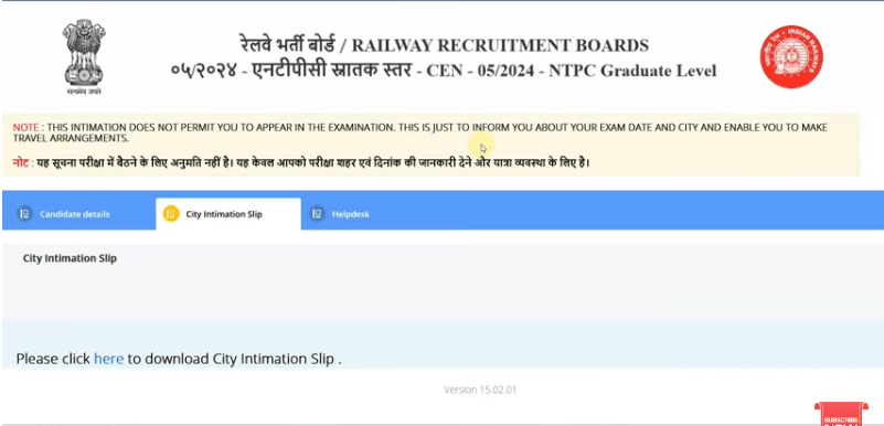 Direct Hyperlink To Obtain RRB NTPC EXAM CITY Slip |