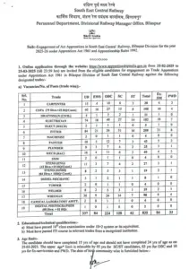 नमस्कार दोस्तों, ITI पास करने वाले सभी विद्यार्थियों के लिए साउथ रेलवे ने विभिन्न ट्रेडों के कुल 835 पदों पर भर्ती की प्रकिया शुरू की हैं। यह अप्रेंटिसशिप 1 साल का होगा। जिसमें छात्रों को पढ़ाई के साथ रोजगार पाने का सुनहरा अवसर प्रदान किया हैं। आइए इस खबर को और भी विस्तार पूर्वक समझते है –