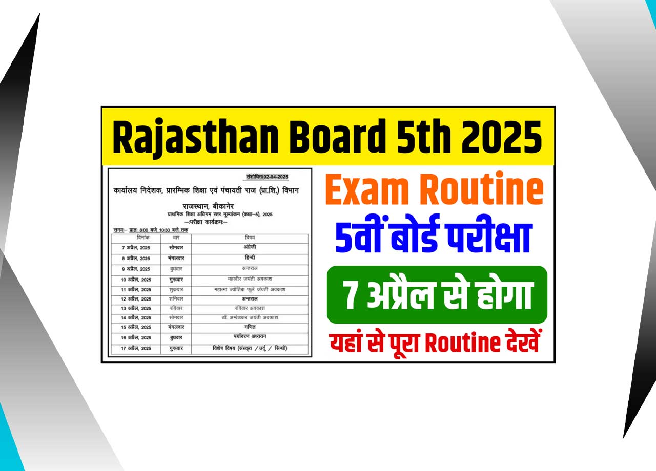 Rajasthan Board fifth Examination Routine 2025 Out – 5वीं बोर्ड परीक्षा 7 अप्रैल से, यहां से पूरा Routine देखें |