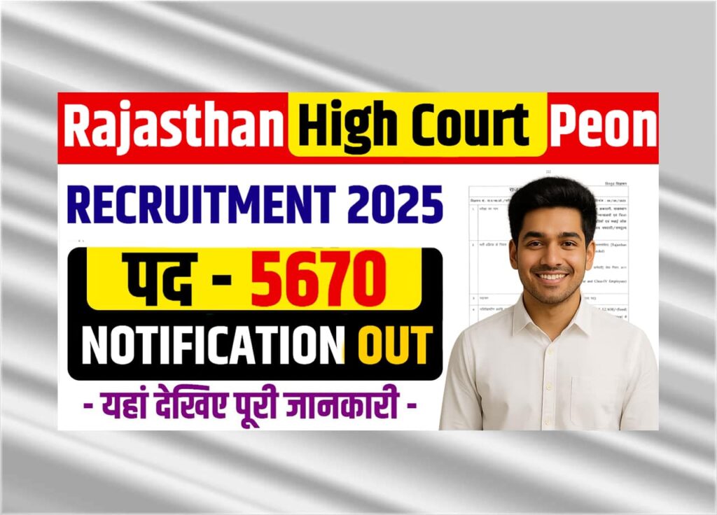 राजस्थान हाई कोर्ट द्वारा चपरासी (Peon) या चतुर्थ श्रेणी कर्मचारी के कुल 5670 पदों के लिए भर्ती की प्रक्रिया शुरू कर दी गई है। इस भर्ती प्रक्रिया के लिए राजस्थान हाइ कोर्ट द्वारा 9 जून 2025 को आधिकारिक नोटिफ़िकेशन जारी किया गया है। इस भर्ती के तहत राज्य के विभिन्न न्यायिक संस्थानों जैसे राजस्थान हाई कोर्ट, राजस्थान राज्य न्यायिक अकादमी (RSJA), राजस्थान राज्य विधिक सेवा प्राधिकरण (RSLSA), सभी जिला न्यायालयों (District Courts) तथा जिला विधिक सेवा प्राधिकरण, तालुका विधिक सेवा समितियाँ और स्थायी लोक अदालतों (DLSA + TLSC + PLA) में नियुक्तियाँ की जाएंगी।