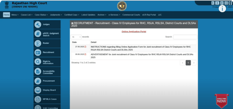 इस भर्ती का आधिकारिक नोटिफिकेशन 9 जून 2025 को राजस्थान हाई कोर्ट की आधिकारिक वेबसाइट पर जारी किया गया था।