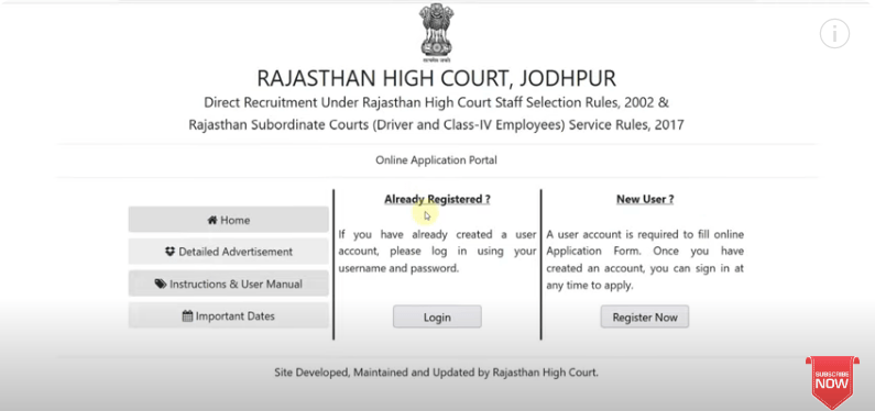 स्टेप 2 – लॉगिन करके Rajasthan Excessive Courtroom Peon Recruitment 2025 मे ऑनलाइन अप्लाई करें