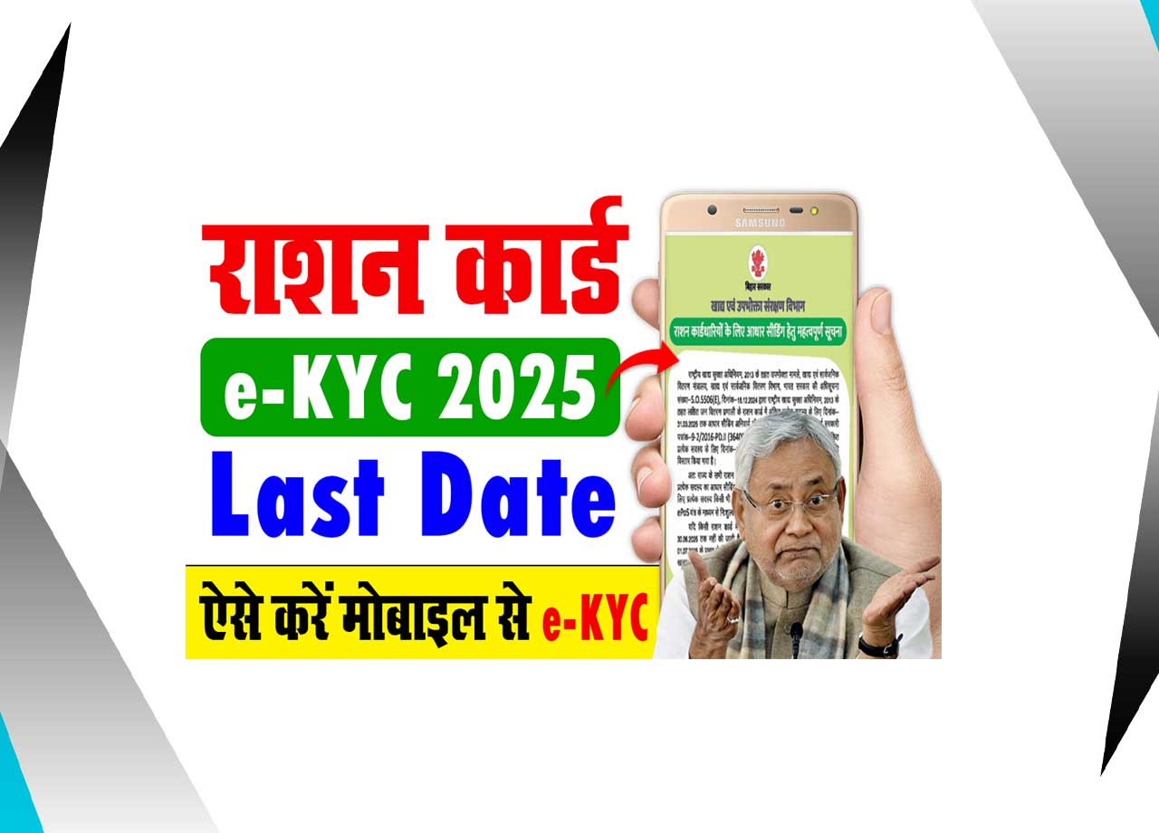 बिहार राज्य के सभी राशन कार्ड धारकों के लिए खाघ विभाग, बिहार सरकार द्धारा Ration Card E KYC करने की अन्तिम तिथि 30 जून, 2025 निर्धारित किया गया है।