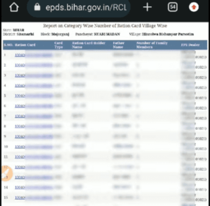 • क्लिक करने के बाद आपके गांव के सभी राशन कार्ड धारको की लिस्ट खुल जायेगी जो कि, इस प्रकार का होगी –