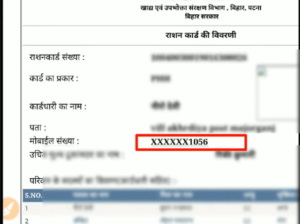 • अब आप यहां पर आसानी से देख सकते है कि, आपके राश कार्ड मे कौन सा मोबाइल नंबर लिंक है जैसा कि, आप इस तस्वीर मे देख सकते है  –