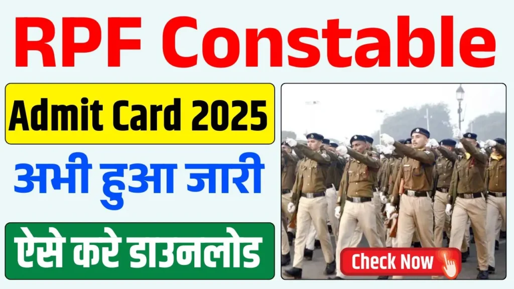 RPF Constable Admit Card 2025: आरआरबी द्वारा रेलवे सुरक्षा बल के पदों पर भर्ती के लिए परीक्षा हेतु एडमिट कार्ड जारी कर दिए हैं। यदि आपने भी इस भर्ती में आवेदन किया था, तो अब भी इस एडमिट कार्ड को डाउनलोड कर सकते है।