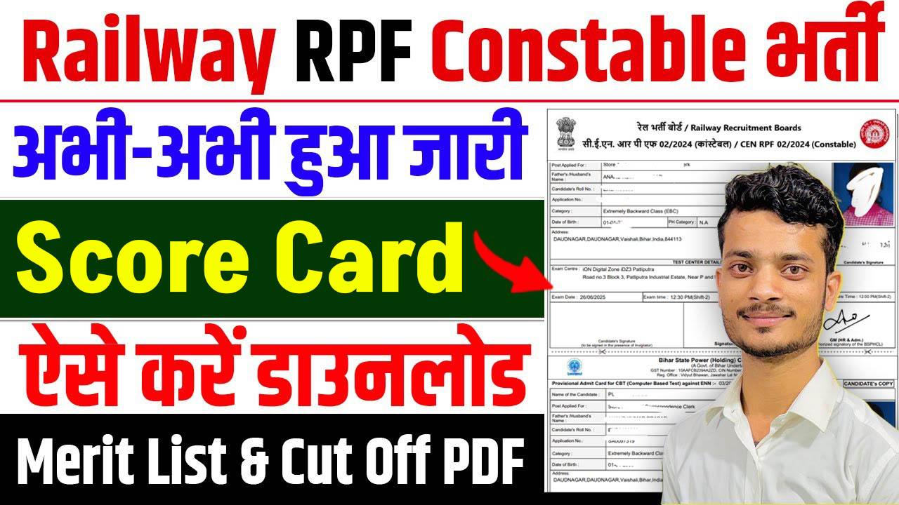 आपको बता दें कि, बीते 19 जून, 2025 के दिन ही RPF Constable का रिजल्ट जारी किया गया था जिसके बाद सभी अभ्यर्थी बेसब्री से अपने – अपने स्कोर कार्ड के जारी होेने का इंतजार कर रहे है उन्हें बता दें कि, RPF Constable Rating Card 2025 को 20 जून, 2025 की शाम 5 बजे जारी कर दिया गया है जिसे चेक करने के लिए आपको अपने साथ अपने लॉगिन डिटेल्स को तैयार रखना होगा तथा