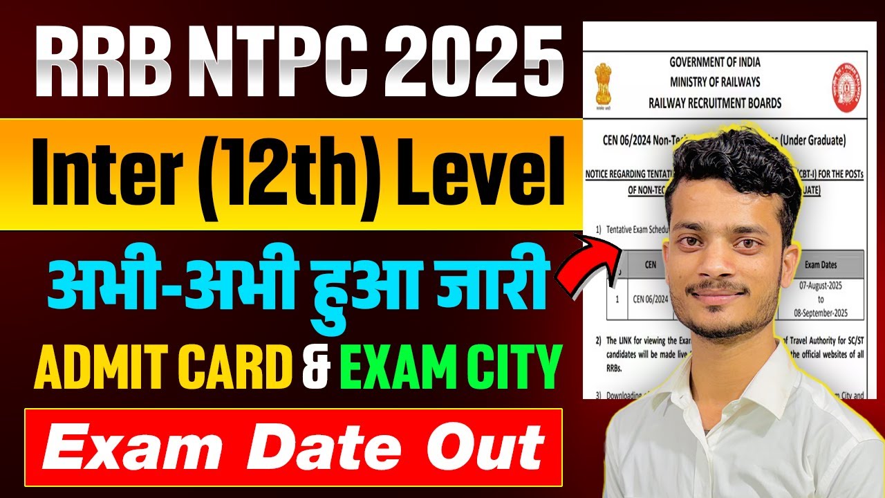 आज के इस आर्टिकल में हम उन सभी उम्मीदवारों को जो रेलवे भर्ती बोर्ड द्वारा आयोजित होने वाले एनटीपीसी इंटर लेवल परीक्षा में शामिल होने वाले है, उन सभी को इस लेख में बहुत-बहुत हार्दिक स्वागत करते है। आज हम आप सभी को इस लेख में Railway NTPC Inter Stage (10+2) Examination Date and  Admit Card 2025 के बारे में बताएंगे। जिससे आप सभी इस परीक्षा के एडमिट कार्ड आसानी से चेक और डाउनलोड कर पाएंगे।