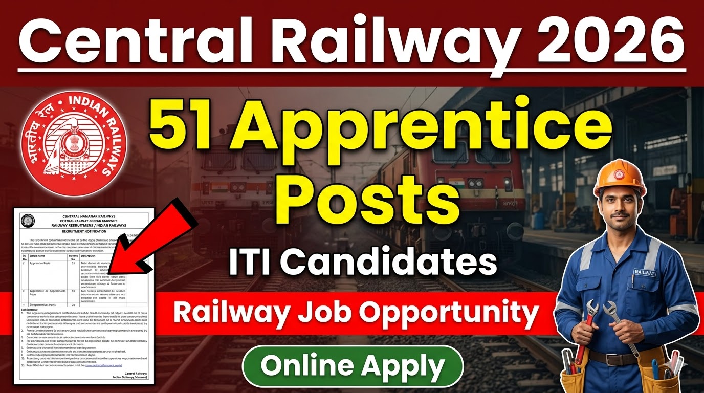 अगर आप भी RRC Central Railway Apprentices Recruitment 2026 के लिए आवेदन करके Apprentice के तौर पर ट्रेनिंग में अच्छी स्किल सिखना चाहते हैं, और इस Apprentices भर्ती के लिए अप्लाई करने चाहते हैं, तो आपका हमारे इस लेख में स्वागत है। आपको बता दें कि Railway Recruitment Cell (RRC) Central Railway ने 10 मार्च 2026 को RRC CR Apprentice Recruitment 2026 के लिए नोटिफिकेशन जारी की है। जिसमें कुल 51 अप्रेंटिस स्लॉट्स पर भर्ती के लिए आवेदन शुरू कर दिए हैं। इस भर्ती के लिए स्टेनोग्राफर और ITI ट्रेड्स के उम्मीदवारों से आवेदन मांगे हैं।