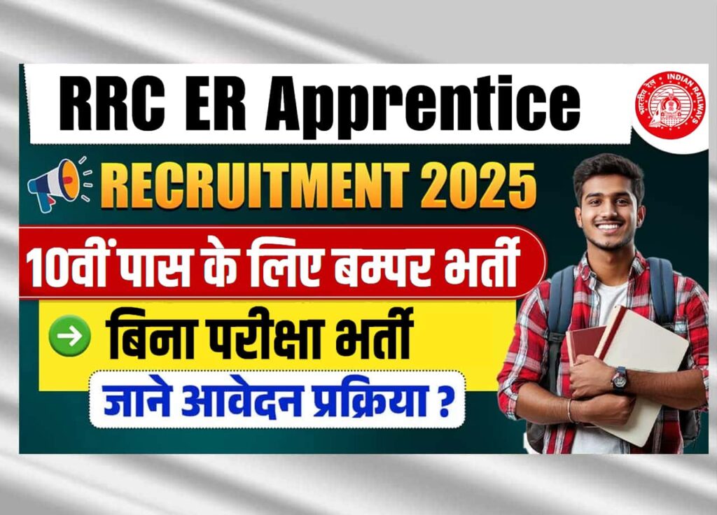 अपने इस आर्टिकल मे हम, आप सभी 10वीं + ITI पास अभ्यर्थियों का स्वागत करना चाहते है जो कि, ईस्टर्न रेलवे मे अप्रैंटिस के पद पर नौकरी प्राप्त करना चाहते है उनके लिए ईस्टर्न रेलवे द्धारा अप्रैंटिस के पद पर भर्ती हेतु नया भर्ती नोटिफिकेशन जारी किया है और इसीलिए आपको इस आर्टिकल की मदद से विस्तार से RRC ER Apprentice Recruitment 2025 के बारे मे बतायेगें जिसके लिए आपको अन्त तक हमारे साथ बने रहना होगा।
