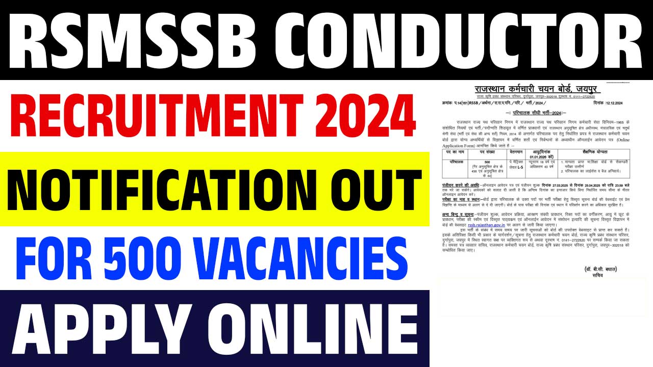RSMSSB or RSSB Jaipur has invited on-line functions from appropriate and eligible candidates with having required qualification and age group for filling up 500 vacant publish of Conductor. Candidates might apply on-line by means of the beneath given hyperlink on or earlier than final date. (i.e. 25/04/2025). Emptiness associated mandatory particulars are written in few paragraphs given beneath as following –