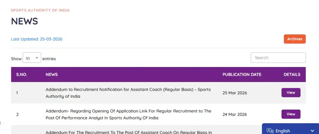 • सबसे पहले SAI की आधिकारिक वेबसाइट sportsauthorityofindia.nic.in पर जाएं।