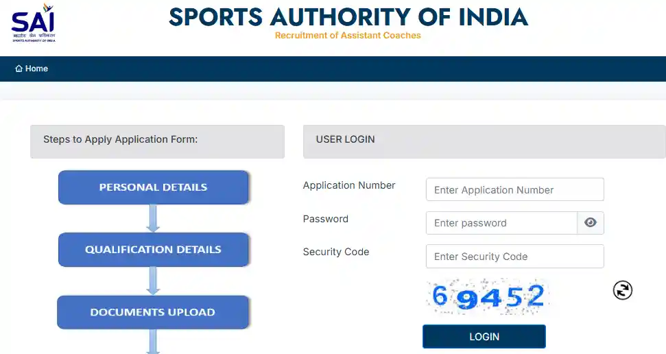 • सबसे पहले SAI की आधिकारिक वेबसाइट sportsauthorityofindia.nic.in पर जाएं।