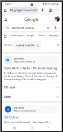 • SBI Account KYC On-line Replace अर्थात् SBI On-line KYC Replace Kaise Kare के लिए सबसे पहले आपको अपने स्मार्टफोन के Chrome Browser मे आना होगा और सर्च बॉक्स मे SBI Web Banking टाईप करके सर्च करना होगा,