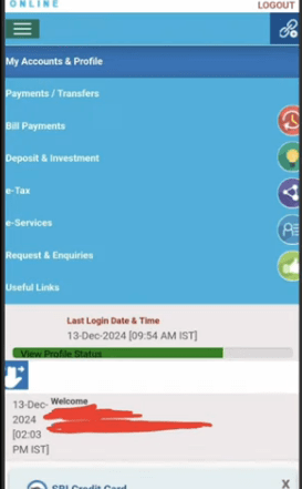 स्टेप 2 – पोर्टल मे लॉगिन करके SBI Account On-line KYC Kaise Kare