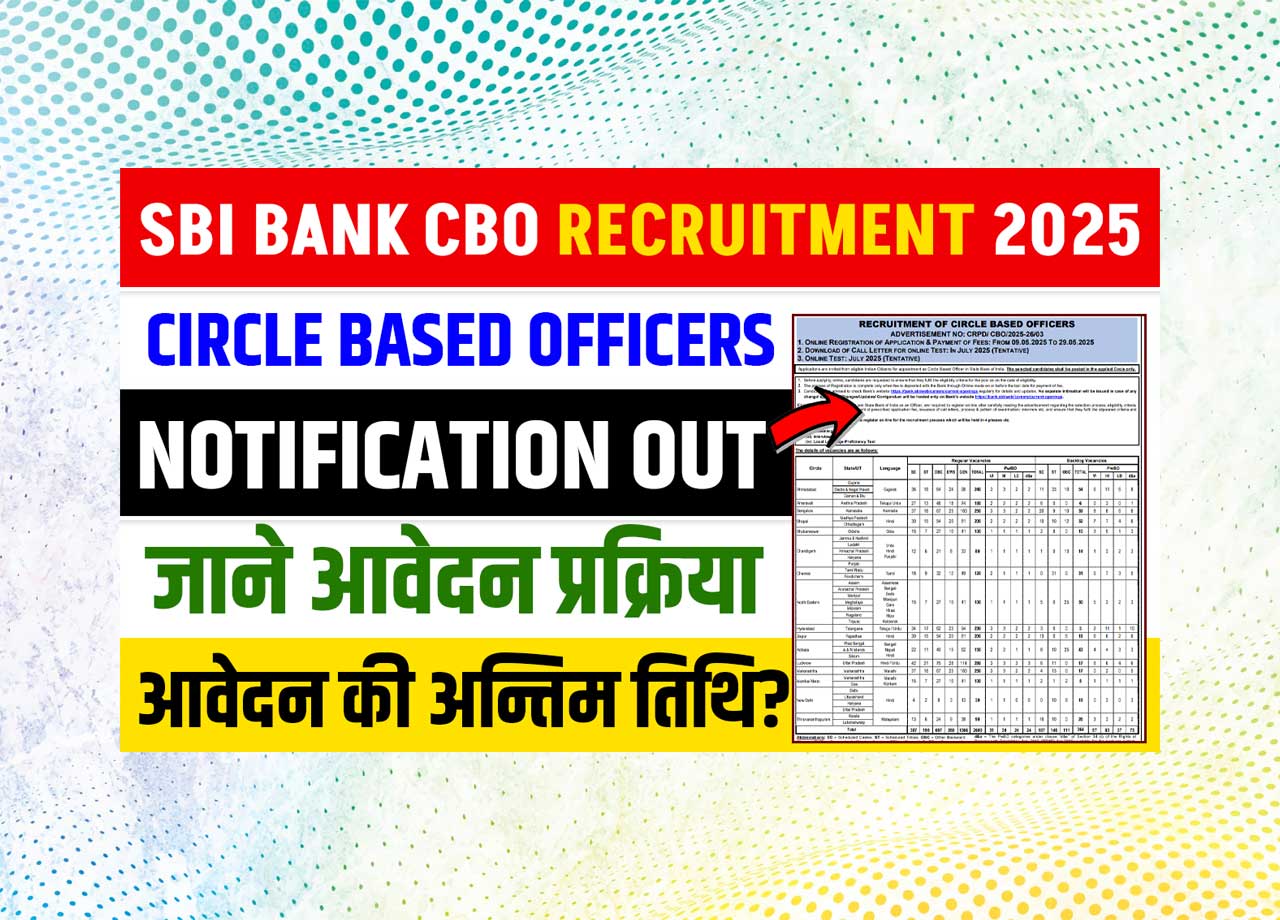 एसबीआई ने सर्कल बेस्ड ऑफिसर्स / Circle Primarily based Officers ( सीबीओ ) की नई भर्ती की जारी, जाने क्या है आवेदन प्रक्रिया और आवेदन की अन्तिम तिथि – SBI Financial institution CBO Recruitment 2025?