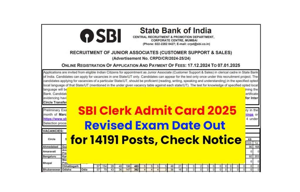 इस लेख की मदद से व्यक्ति आधिकारिक वेबसाइट से SBI Clerk Important Admit Card 2025 डाउनलोड कर सकेंगे। साथ ही, भर्ती परीक्षा के बारे में नवीनतम अपडेट प्राप्त करने के लिए हमारे वेब पोर्टल के संपर्क में रहें।